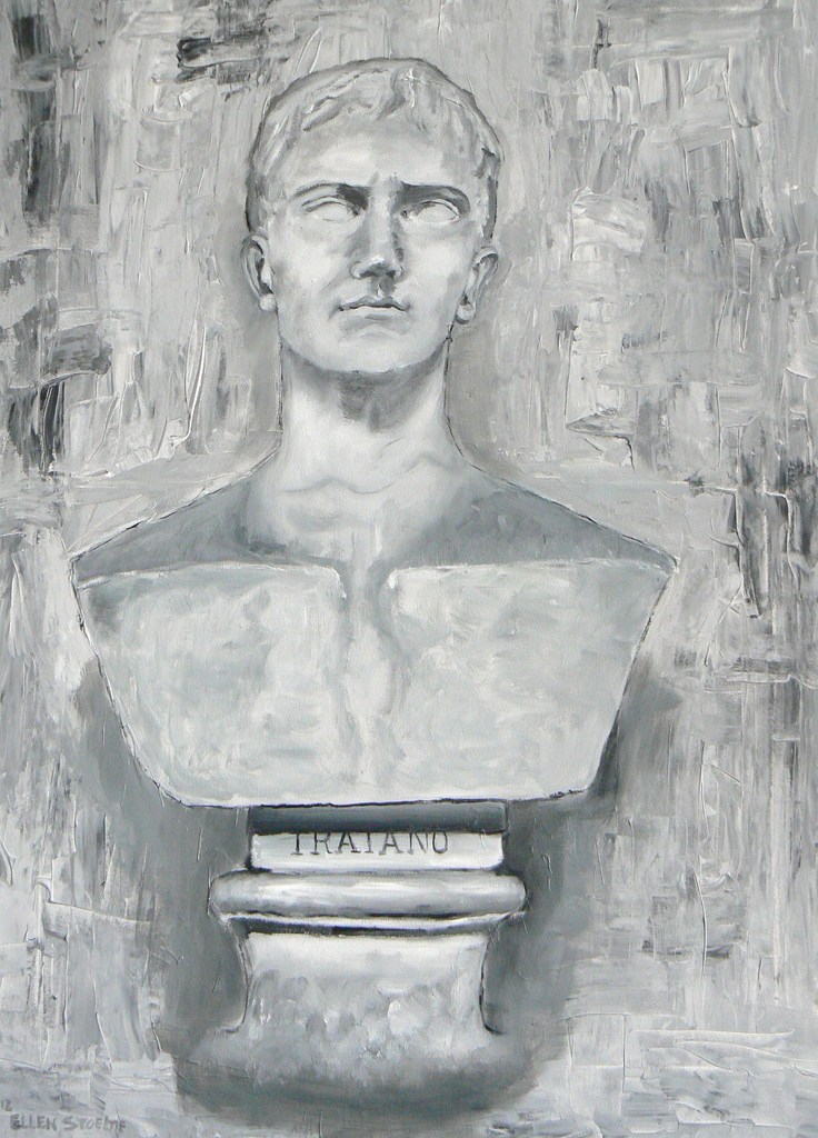 Wit Grijs Zwart Beeld Oil Canvas Torso Olieverf Doek Acrylverf Acrylic Realisme Realism Paint Cultuur Culture History Historie Buste Statue Rome Traiano