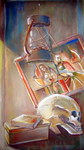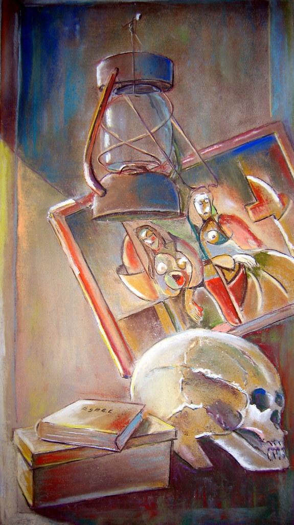 impressie naar bijbels thema : Prediker 12 vers 6 en 7 Vers6 :Voordat het zilveren koord losgemaakt en de gouden lamp verbroken wordt, voordat de kruik bij de bron verbrijzeld en het scheprad in de put verbroken wordt. vers 7 en het stof wederkeert tot de aarde, zoals het geweest is, en de geest wederkeert tot God, die hem geschonken heeft.