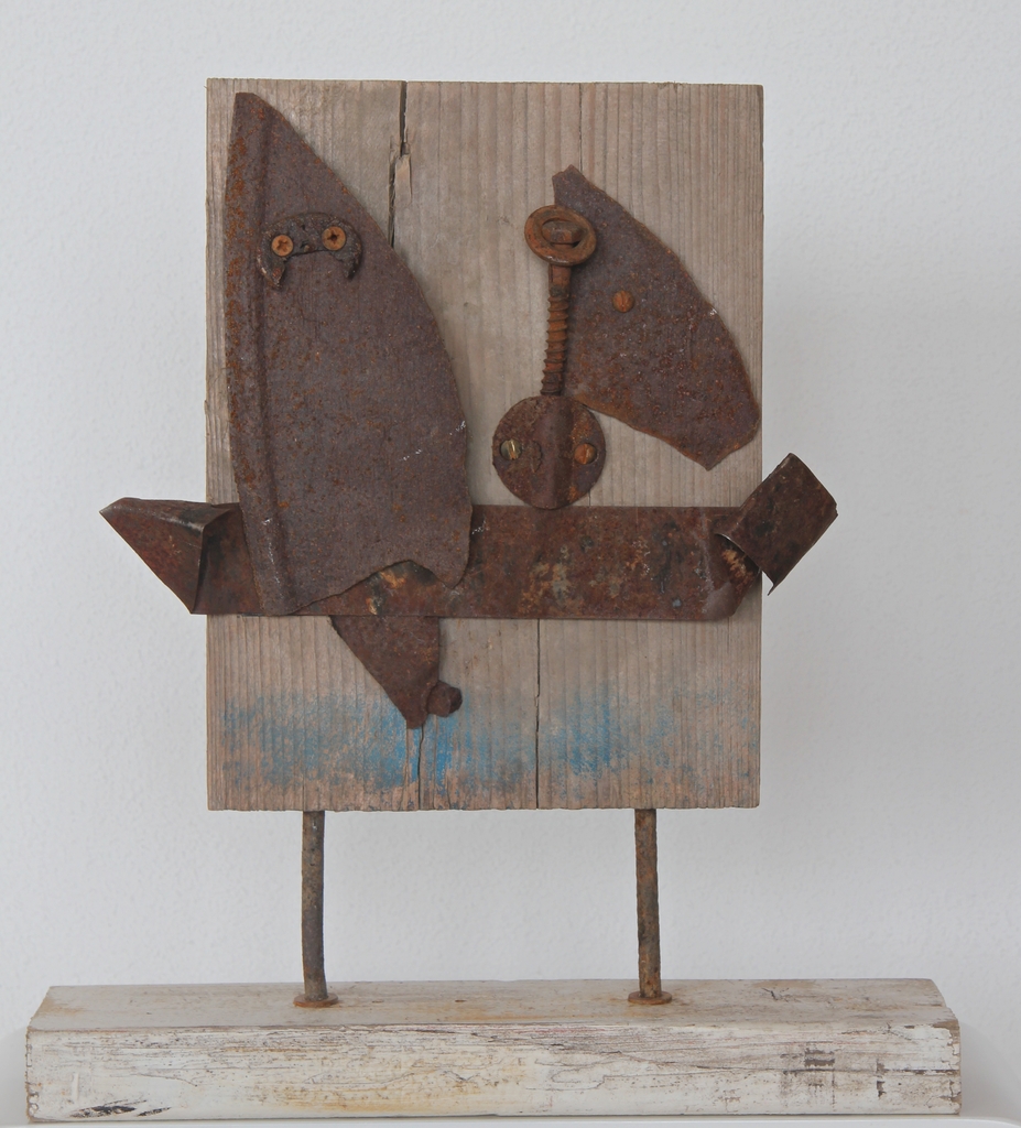 nieuwe tijd geeft ruimte voor creatieve uiting in het scheppen van sculpturen en wandobjecten uit gejutte strandvondsten en geroest metaal