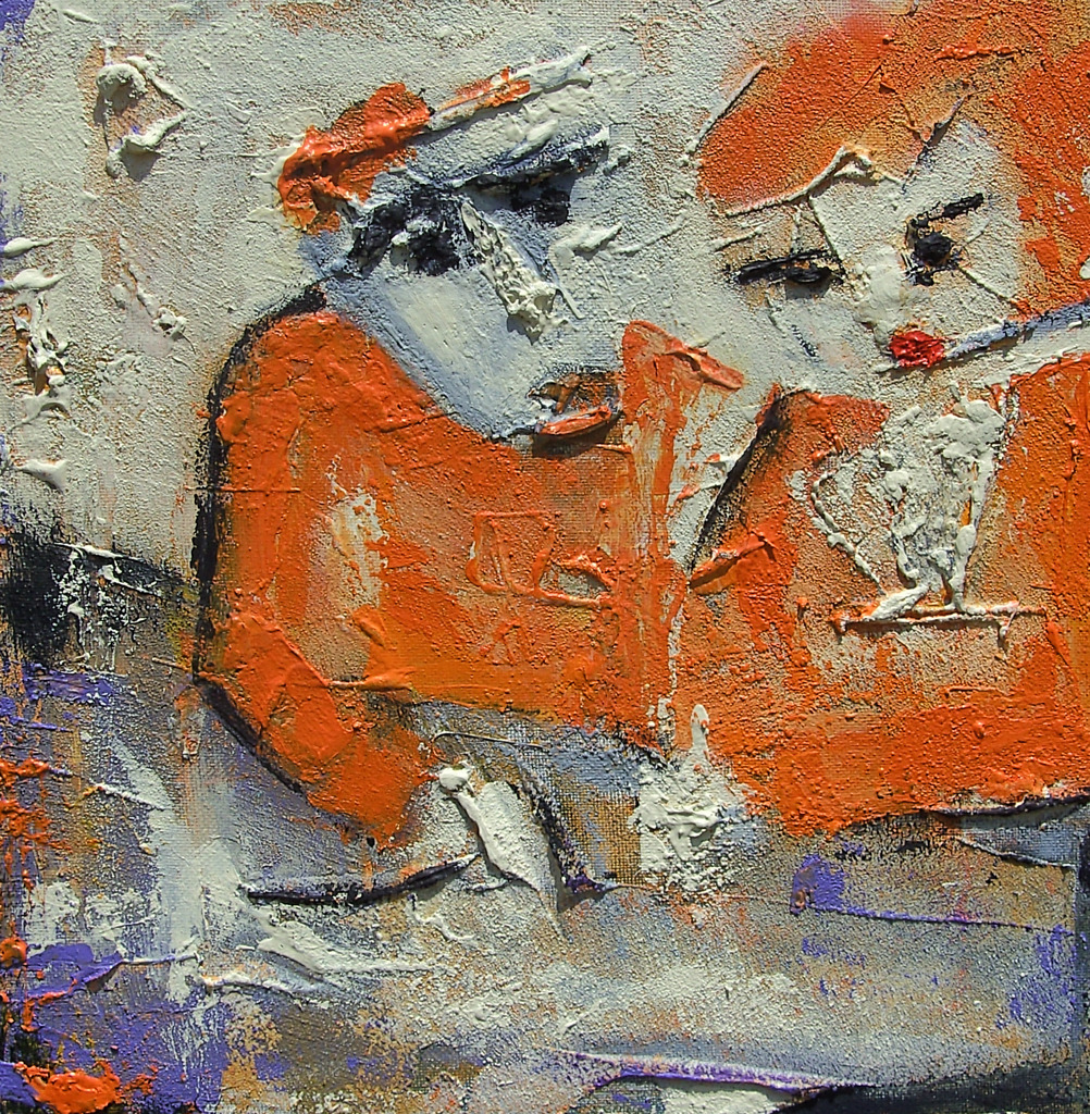 Wit Oranje Zwart Vrouw Man Gesprek