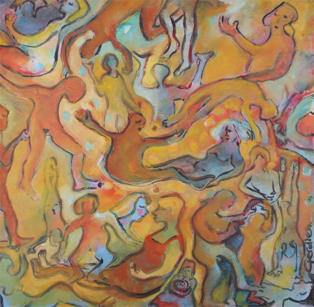 lijnen, kleuren en vormen worden een verhaal, waarbij techniek en materiaal hulpmiddelen zijn. de 5-jarige opleiding aan de kon. academie voor beeldende kunst in den haag `84-`89 bood een scala aan techniek- en materiaalkennis. tekenen, etsen en schilderen waren de afstudeervakken.