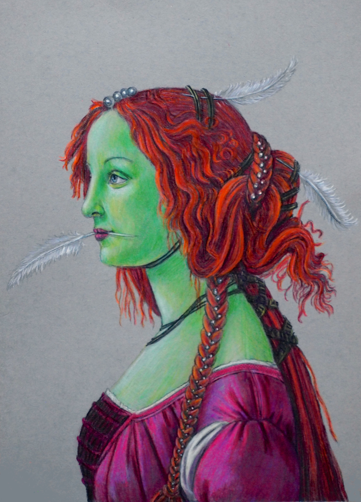 De eeuwenoude voorbeelden van meesters in de schilderkunst, haar affiniteit met kleding en het spel van kleuren vormen samen de bron van inspiratie voor haar schilder- en tekenwerk......