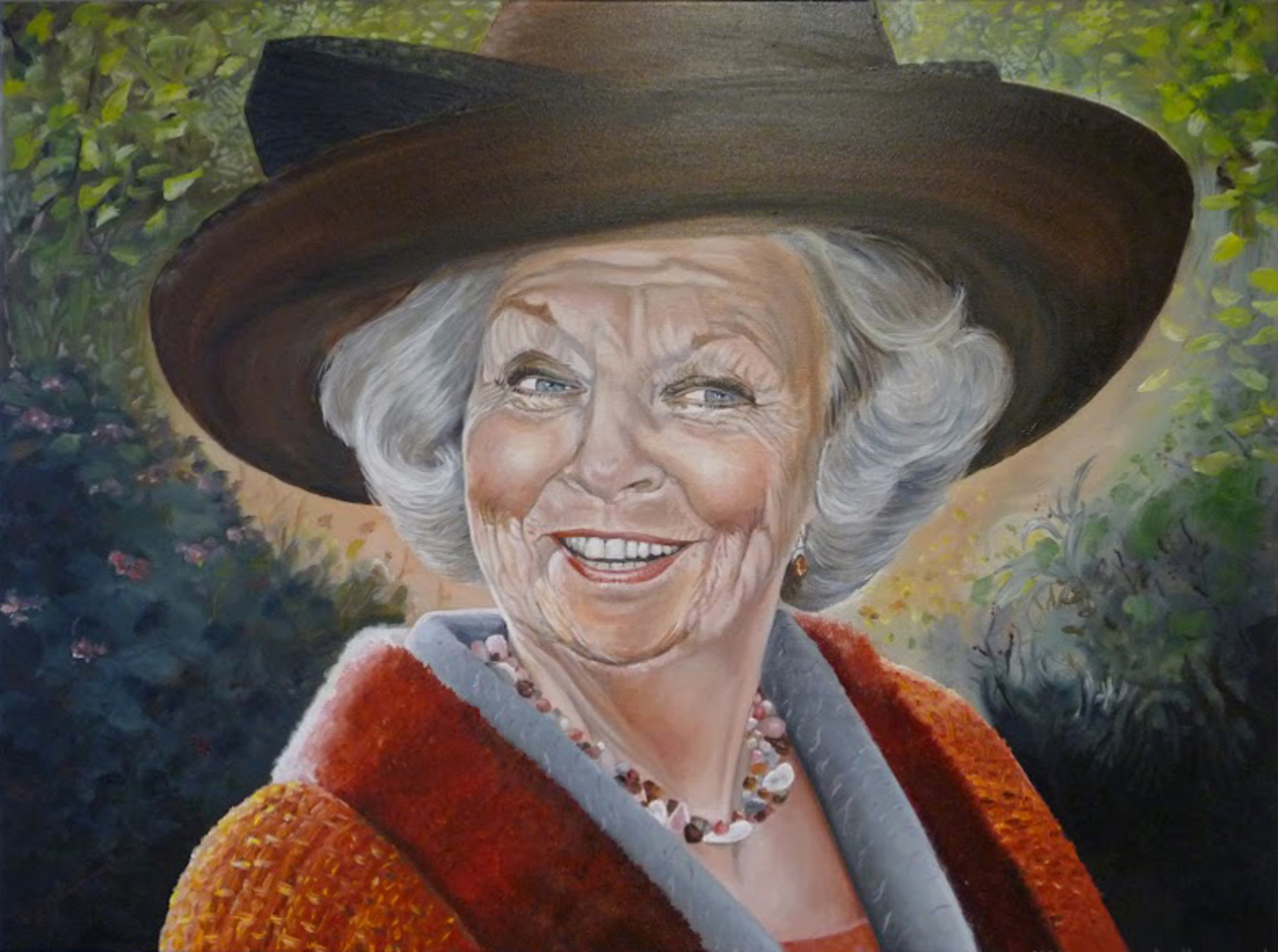 Portret Van Beeld Olieverf In Natuur Bos Hoed Koningin Der Park Forest Queen Nature Beatrix Nederlander Hat Beatrix-in-beeld Bealtrix