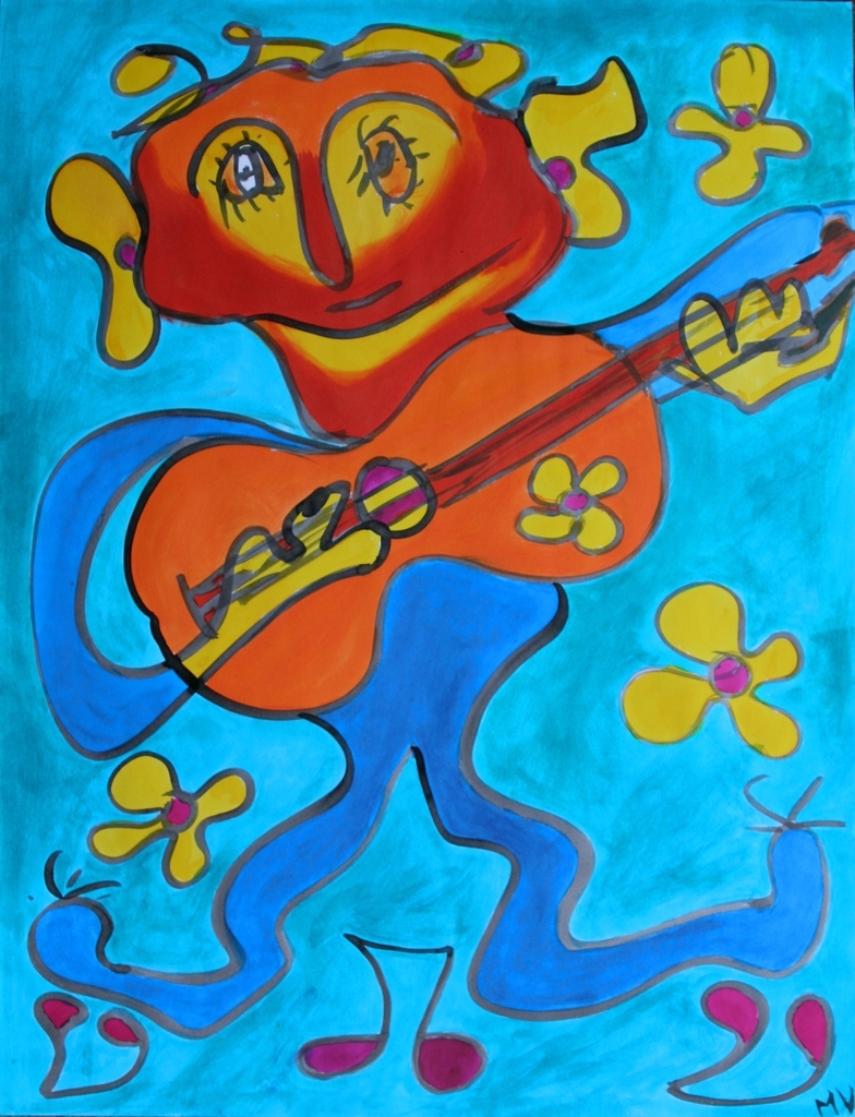 Vrolijke kleurrijke gitarist