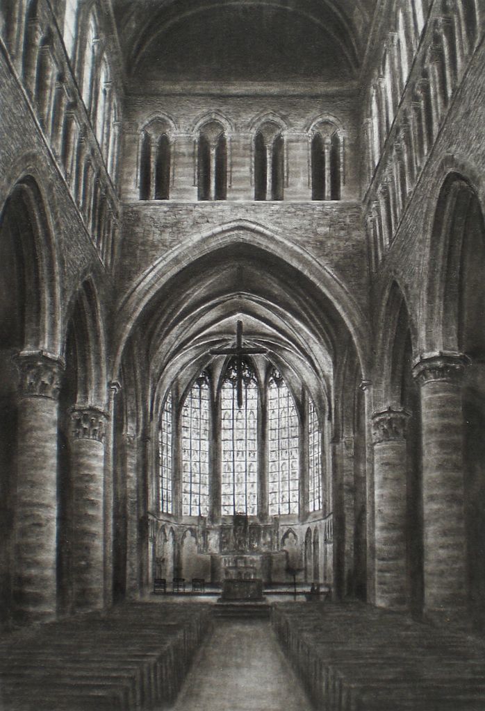 Tekening Houtskool Kerk St Interieur Eglise Jacques Tournai Doornik