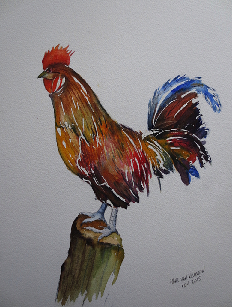 Aquarel Haan Haantje Nat In