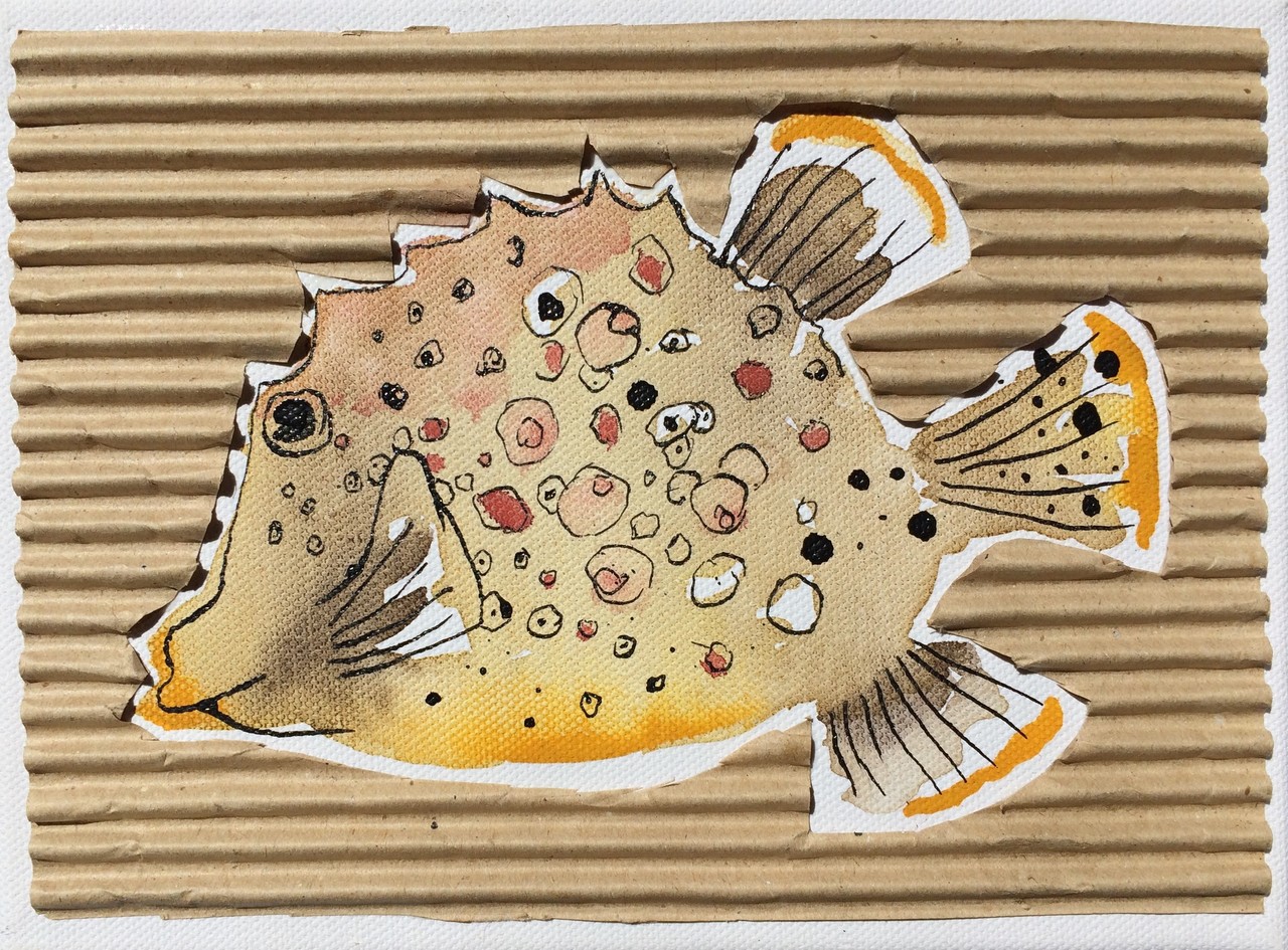 Schilderij Art Vis Canvas Karton Doek Kunst Painting Curacao Antillen Fish Aruba Caribbean Cardboard Bonaire Caribisch Koffervis Trunkfish Antillean