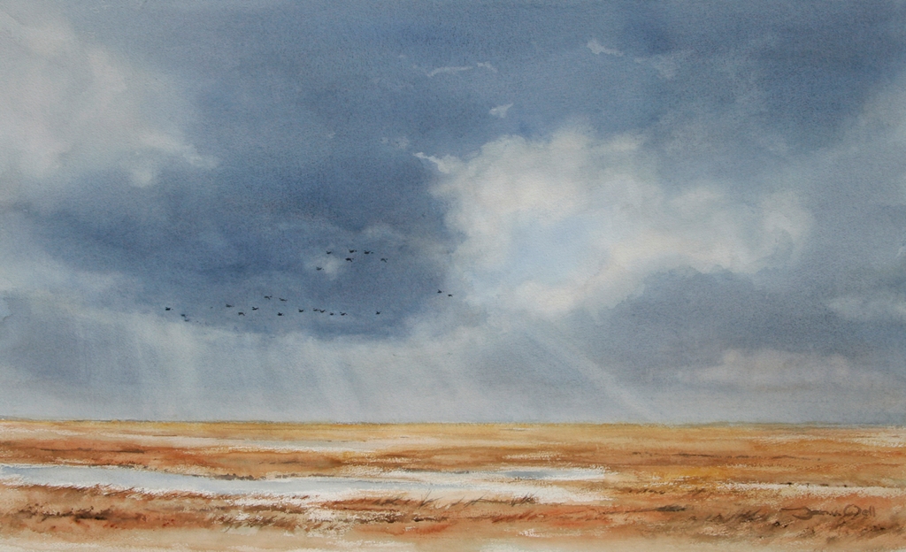 Aquarel Kwelder Terschelling Wolkenlucht Naturalistisch