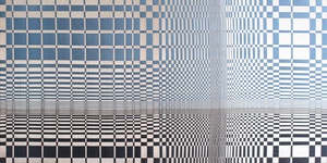 Twee frames van 35 x 35 cm aan elkaar verbonden door satijnlint in diverse kleuren en breedtes.