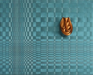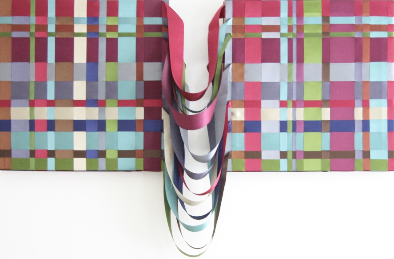 Tijdens het afstuderen aan de Design Academy zocht ik materiaal voor het verbinden van stoelen en kwam terecht bij lint. Het proefmodel bleek niet geschikt te zijn als gevlochten zitting, maar was aan de muur wel een mooi kunstwerk en bleek een verrassend materiaal te zijn.