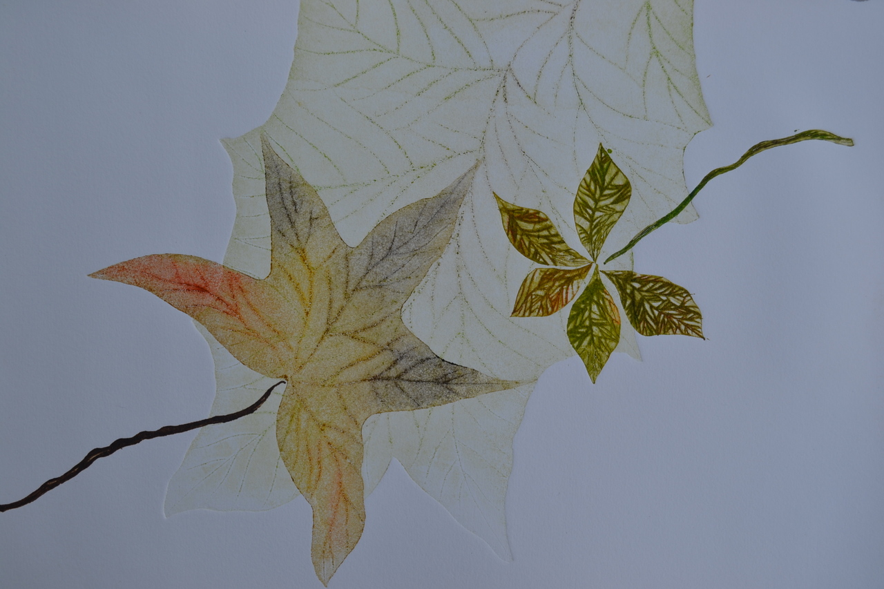 Feuilles XII - droge naald en aquatint - uitgezaagde zinkplaatjes - meerkleuren druk - oplage 1/1