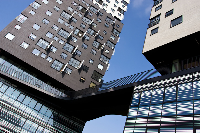 Moderne gebouwen in Groningen. Dit is een woontoren aan de ringweg. De foto is geprint op Dibond(aluminium)