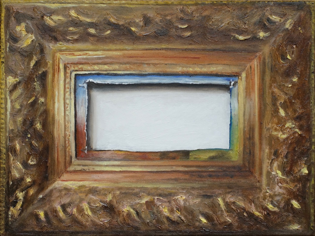 trompe l'oeil: het schilderij is uitgesneden en de lijst blijft achter als schilderij