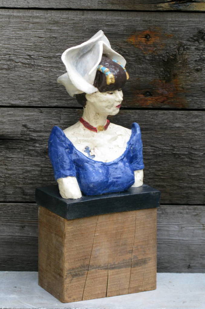Wit Meisje Zwart Blauw Vrouw Sokkel Klei Keramiek Anker Mutsje Gekleurd Klederdracht Zeeuws Tattoo Meijer Tatoe Kapje Bloedkoraalketting