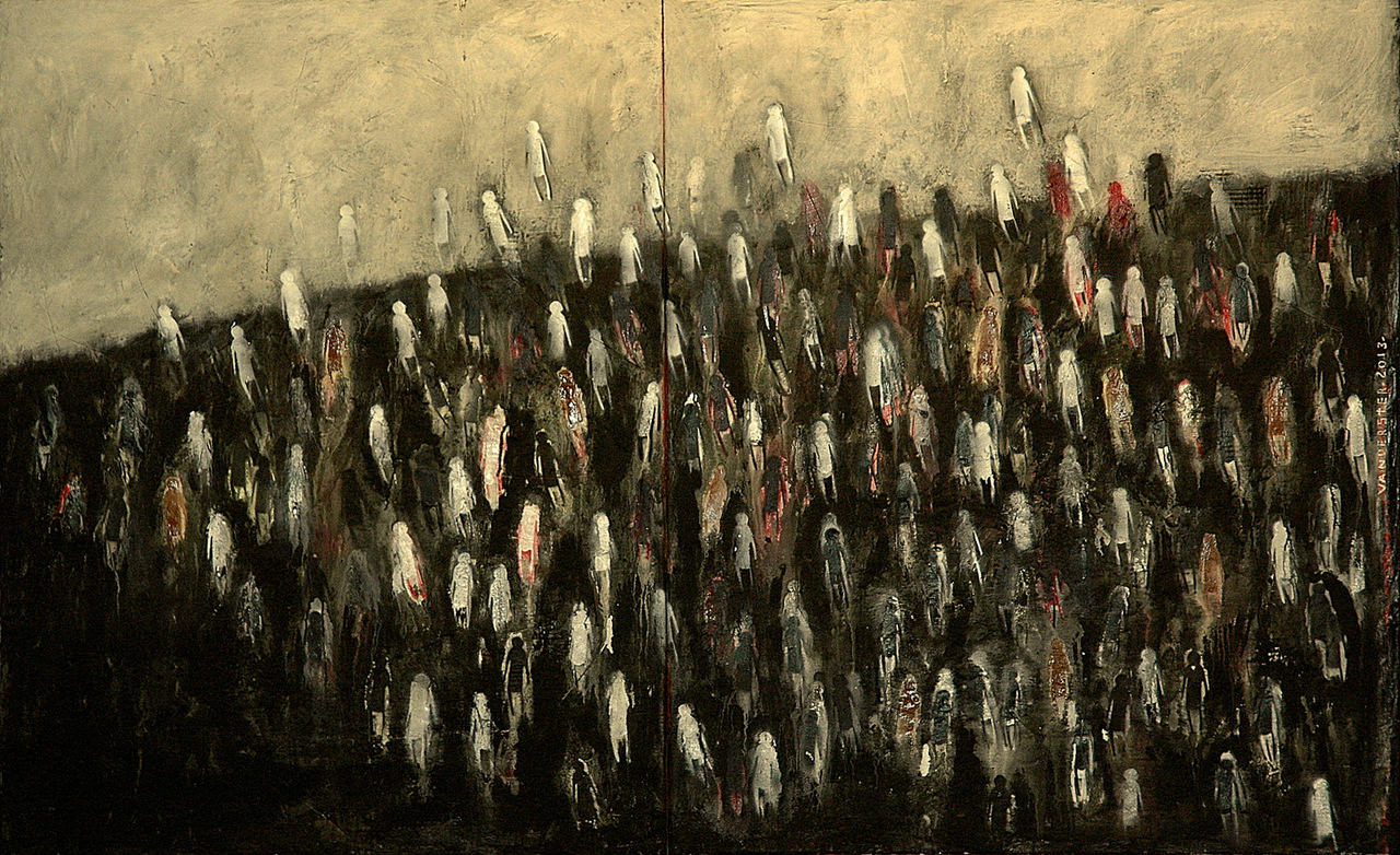 Schilderij Tweeluik Groot Materieschilderij Exto; Garzeno; Janvanderster; Exodus;
