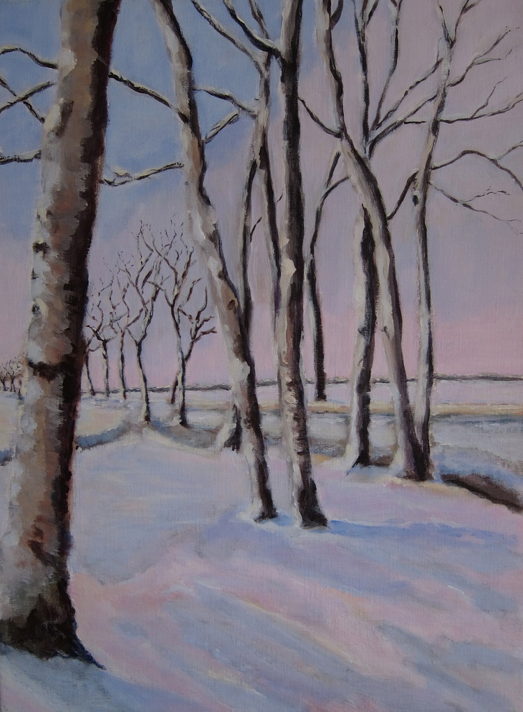 Winter Sneeuw Berk Bomen Landschap Zonnig