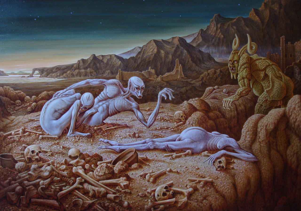 Sky Monster Death Aliens Bones Skulls Moantains