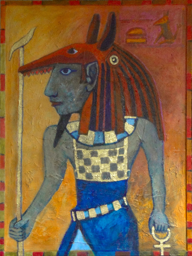 De god Seth reeds gedeeltelijk opgenomen door zijn totem
