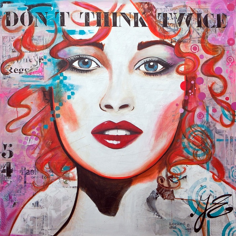 Janet Edens (1971, autodidact) maakt moderne schilderijen, portretten en kunst geboortekaarten geïnspireerd door streetart, retro patronen, graffiti, pop art, typografie en grafische vormen.
