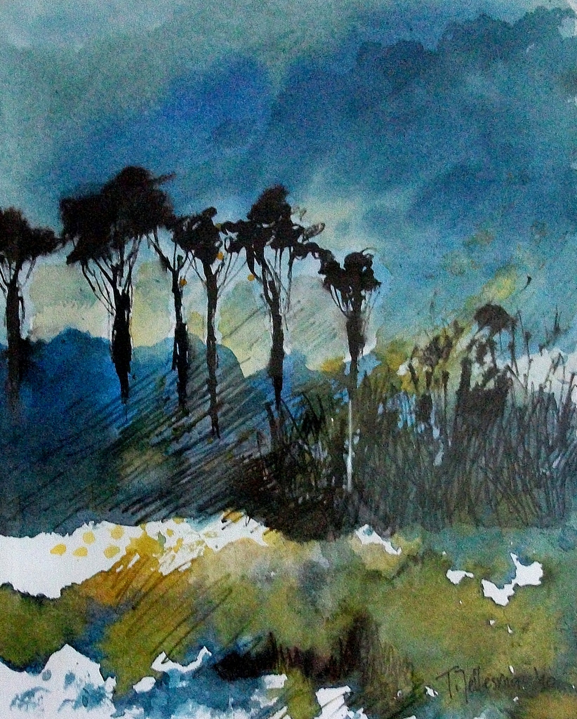 Klein Aquarel Natuur Bomen Winter Tegenlicht