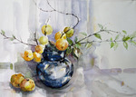Blauwe vaas met 'appeltakken' (moerloosii)