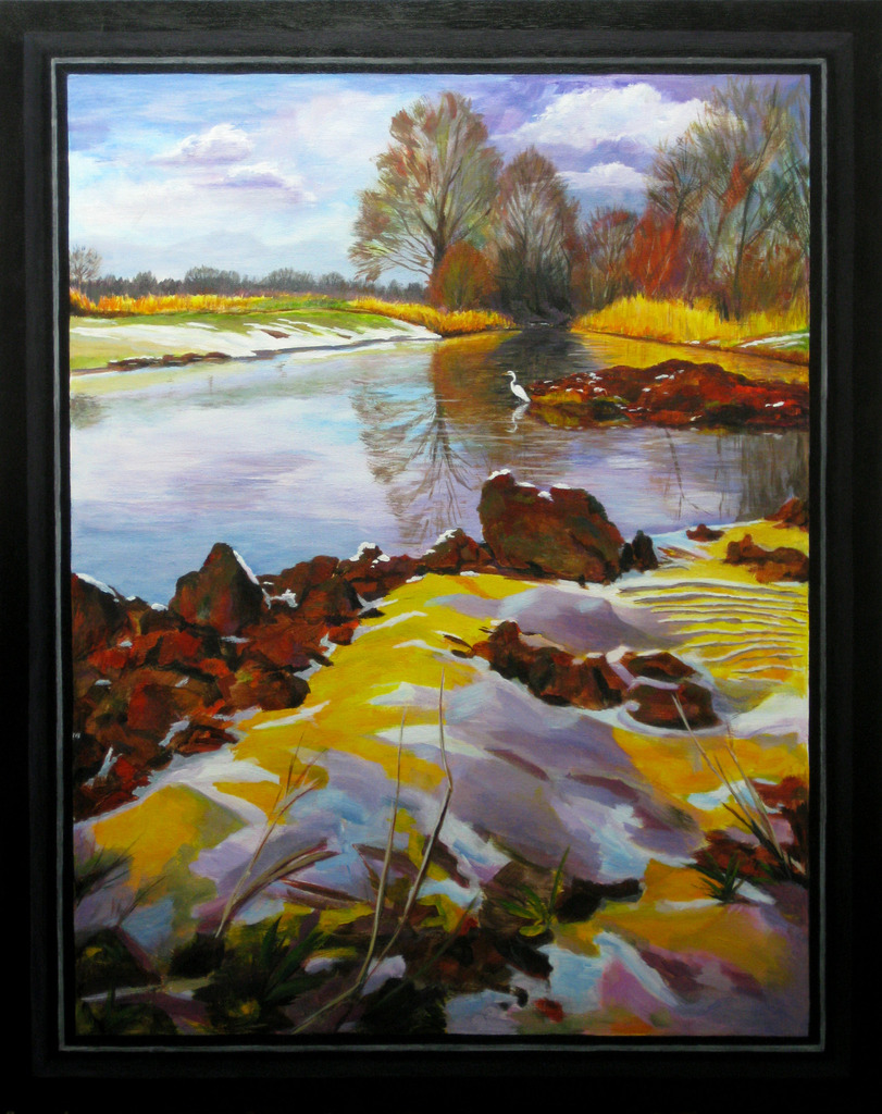 Strand Water Kleurrijk Sneeuw Rots Painting Bomen Lijst Winter Silver Weerspiegeling Oude Witte Kleur Spiegeling Zand Reiger Riet Diepte Rotsblokken Struiken River Oever Meander Doorbraak