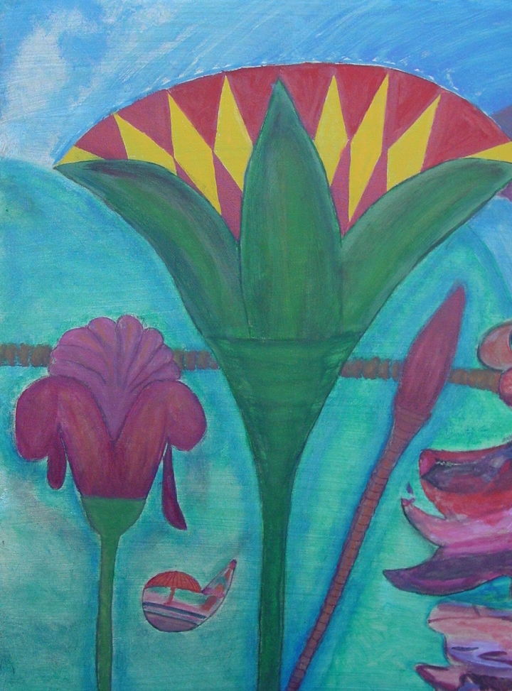 Rood Oranje Geel Blauw Rose Yellow Paars Groen Bruin Blue Red Green Purple Brown Drieluik Pink Orange Mixedmedia Triptych Overvloed Genade Grace Raffia Abundancy