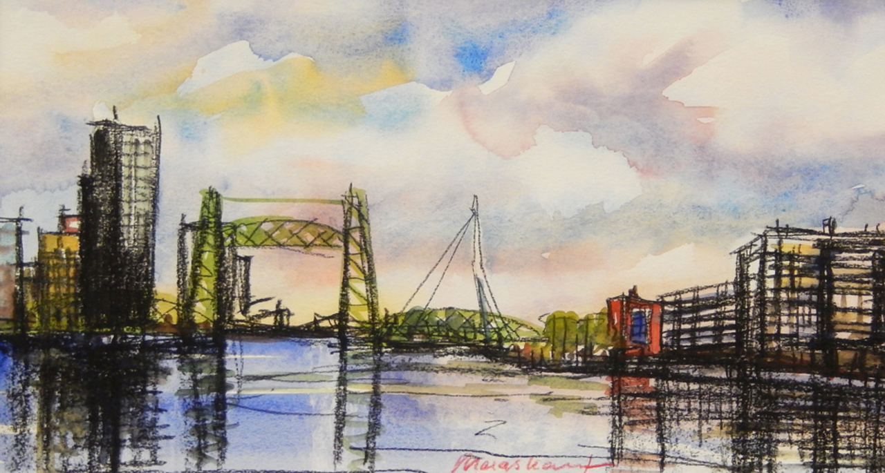Wit Blauw Wolken Water Papier Krijt Aquarel Tekening Lucht Oude Rotterdam Maas Hef Margot Maaskant Heffie