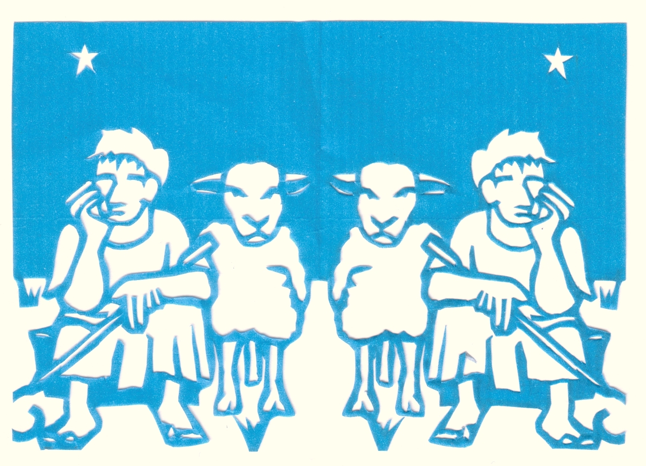 Sleur Herder Bethlehem Schaap Nacht Kerst Knipwerk Knipkunst Scherenschnitt Paper Cut Blauw Papier