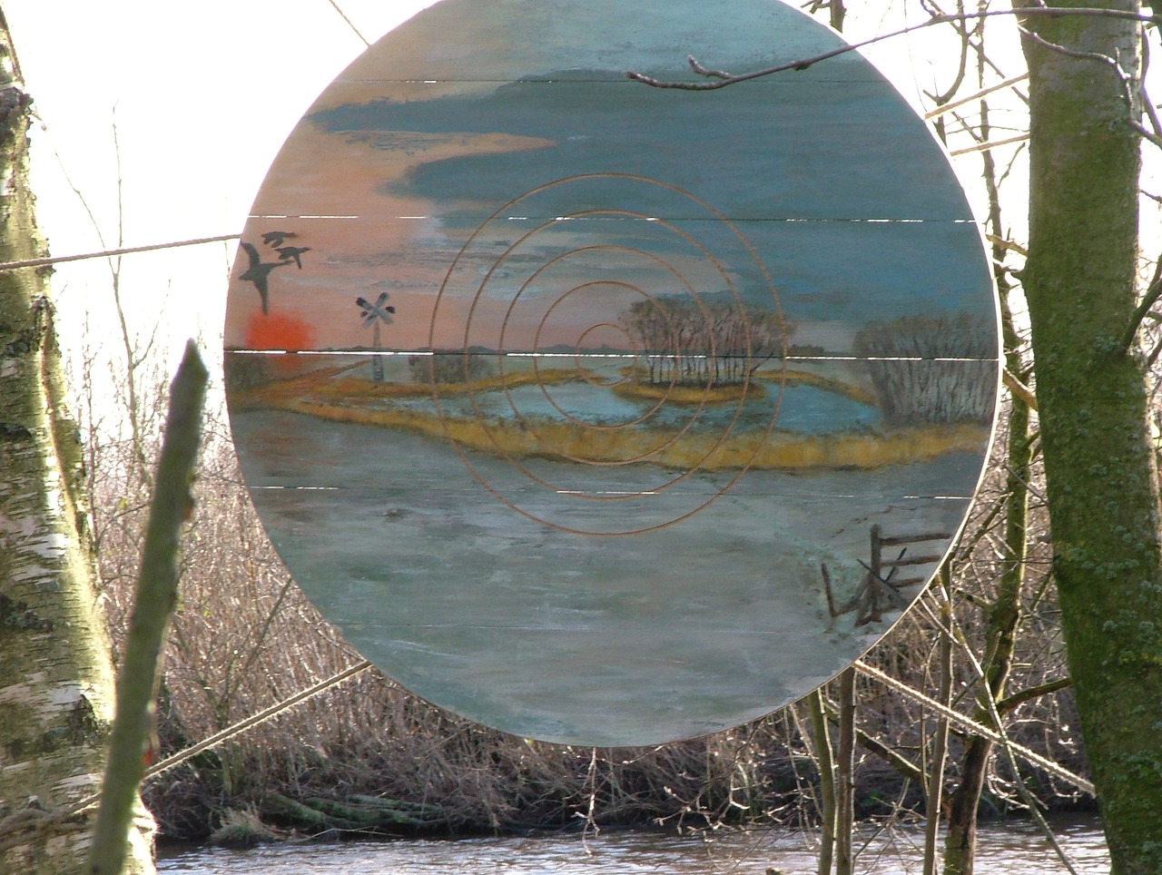 Schietschijf met geschilders landschap.