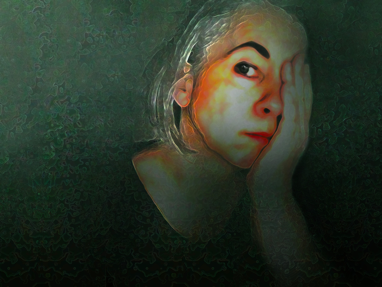 Groen Hand Kant Zelfportret Innerlijk Uiterlijk Verschuilen Nuance Verbergen Afdekken