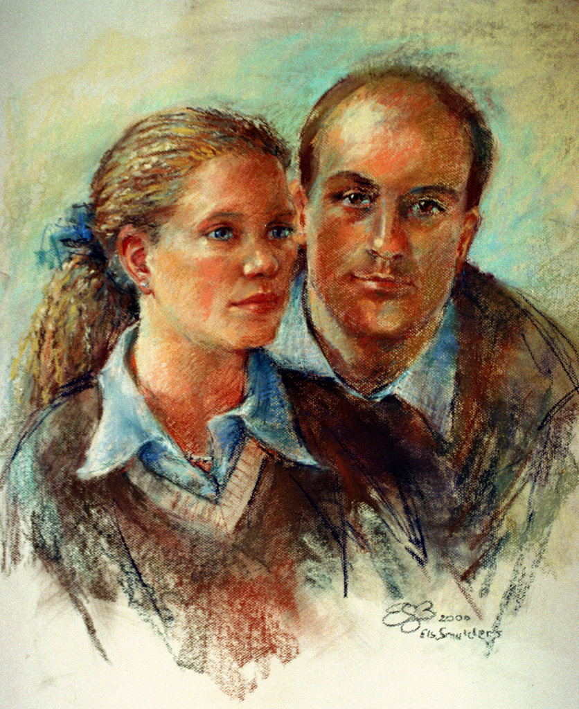 Bregje en Henjo, naar model, pastelkrijt op mi - teinte papier.