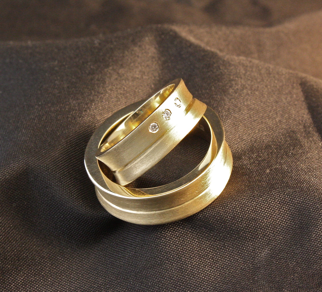 Gouden Trouwringen met 3x 0,015 Crt. Diamant, gemaakt van Geërfd goud.