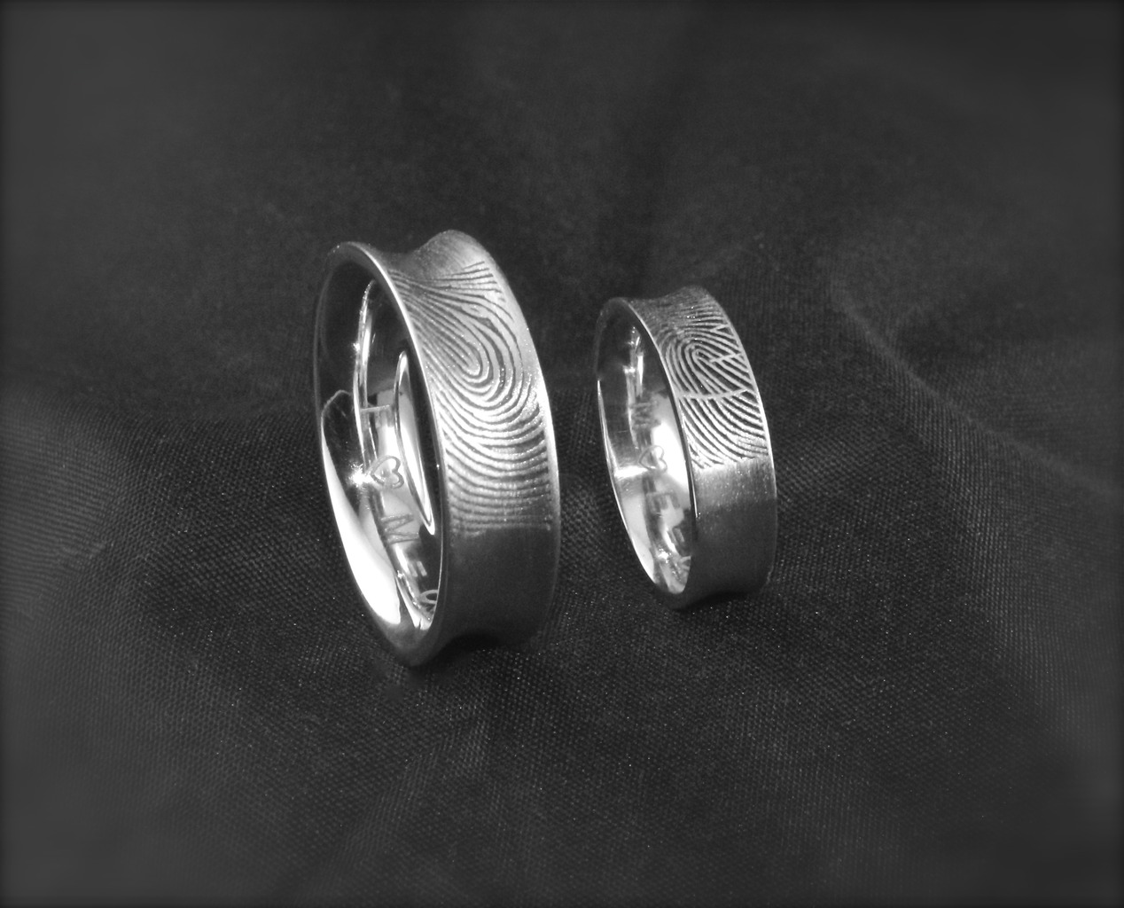 Witgouden Trouwringen met vingerafdruk.