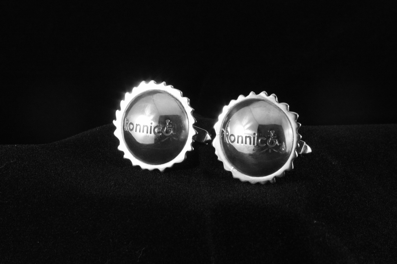 Zilveren manchetknoop met het logo van een bedrijf