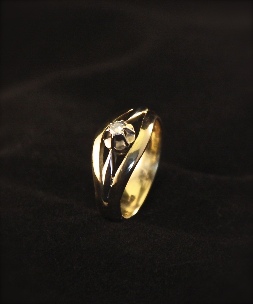 Wit-Geel Gouden Damesring met diamant