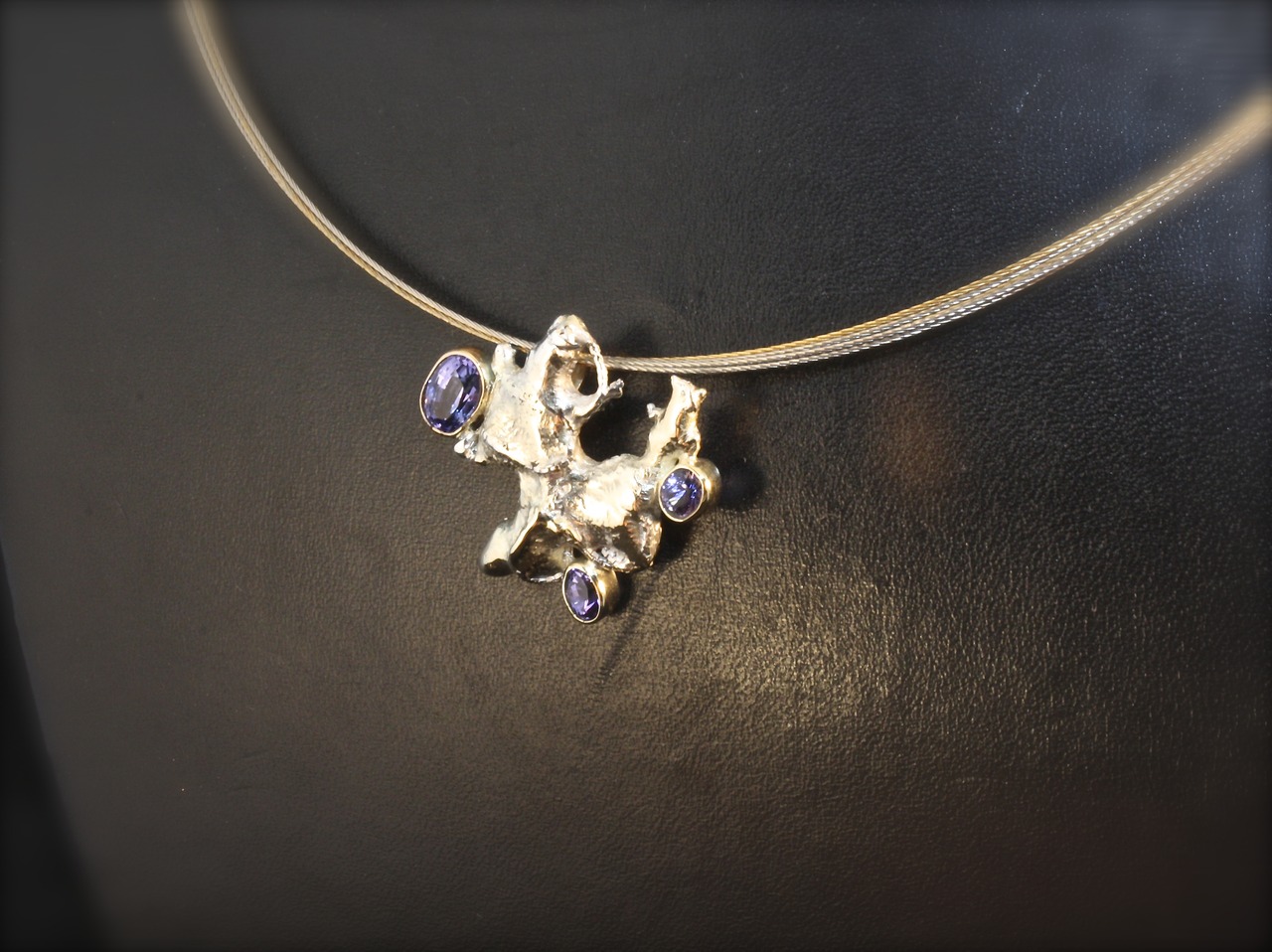 Gouden hanger met 3x Tanzanite, gemaakt in samen smeden van eigen dierbaar goud.