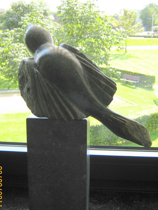 groene vogel opwaards vliegend. kan op elke steen of sokkel worden geplaats.