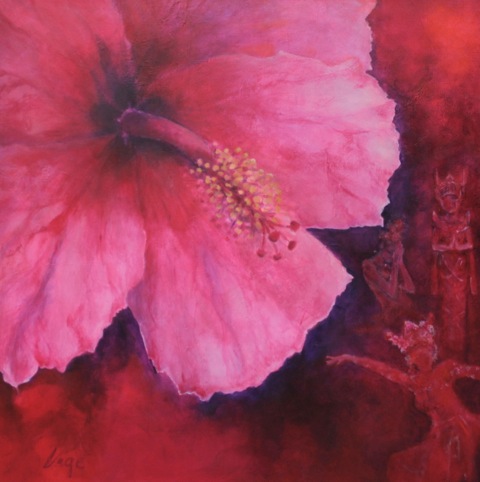 Hibiscus uit de serie 'Heilige Bloemen' Symbool voor zeldzame schoonheid en vrouwelijkheid. Sexualiteit en warmte, nieuws scheppend. Gebruikt bij ceremoniën op Bali, oorspronkelijke bloem van Hawaii.