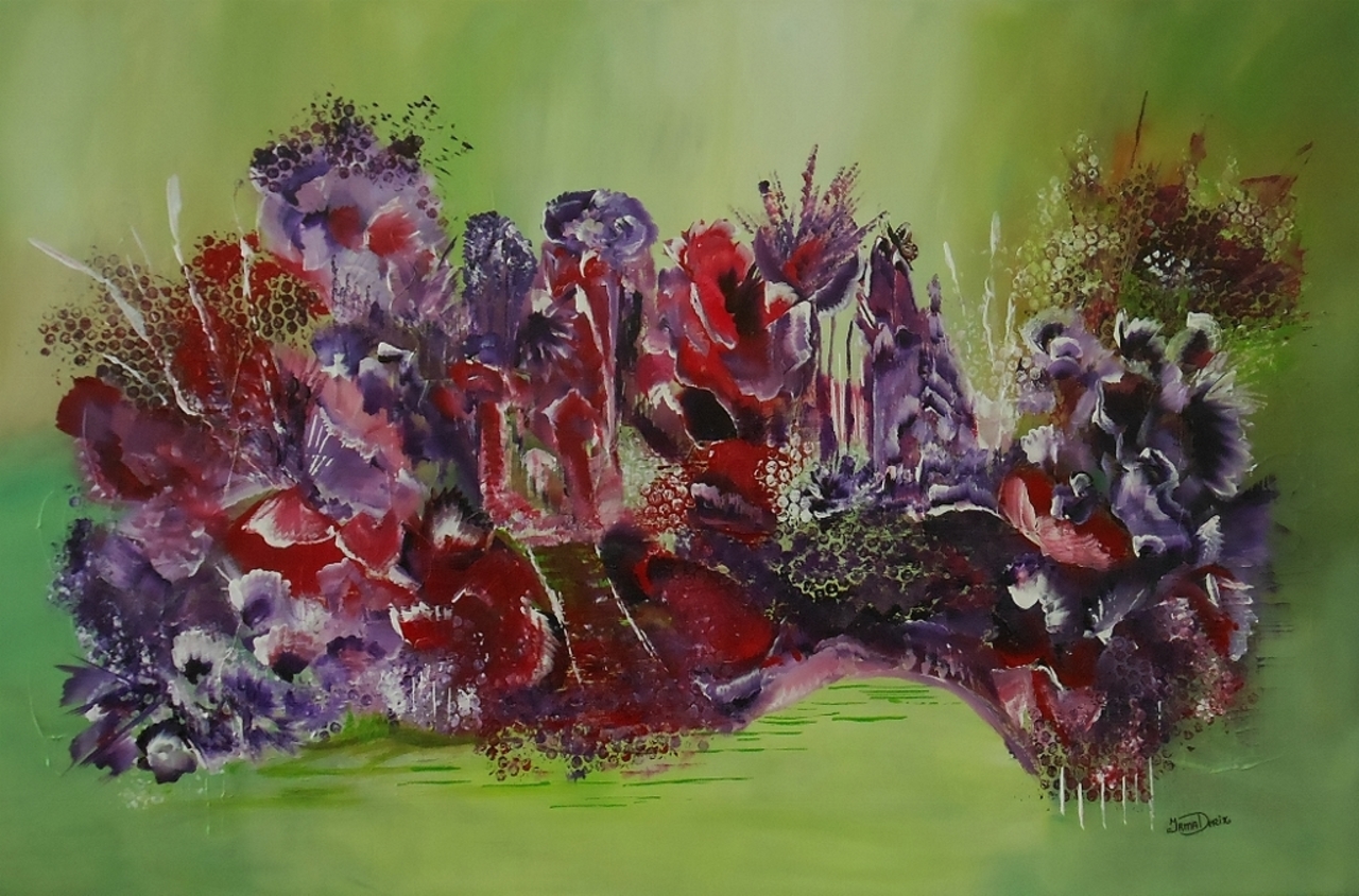 Rood Landschap Acryl Paars Groen Bloemen Doek Op Fantasie Lyrisch Eiland