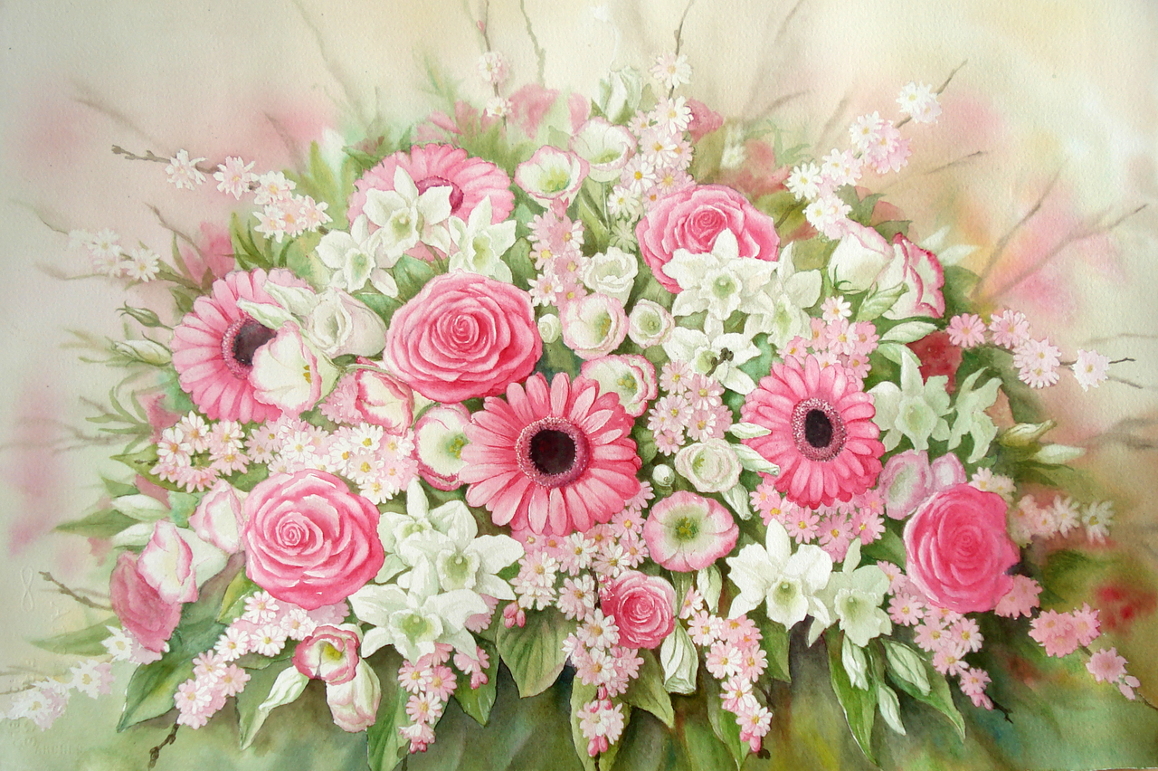 Aquarel overdadig gevuld boeket