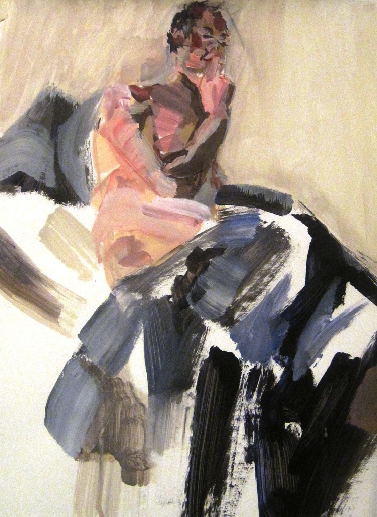 Naakt Portret Man Manlijk Nude Naked Paint Acrylic Blue Bed Wake Up Thinking Portrait Figure Figuur