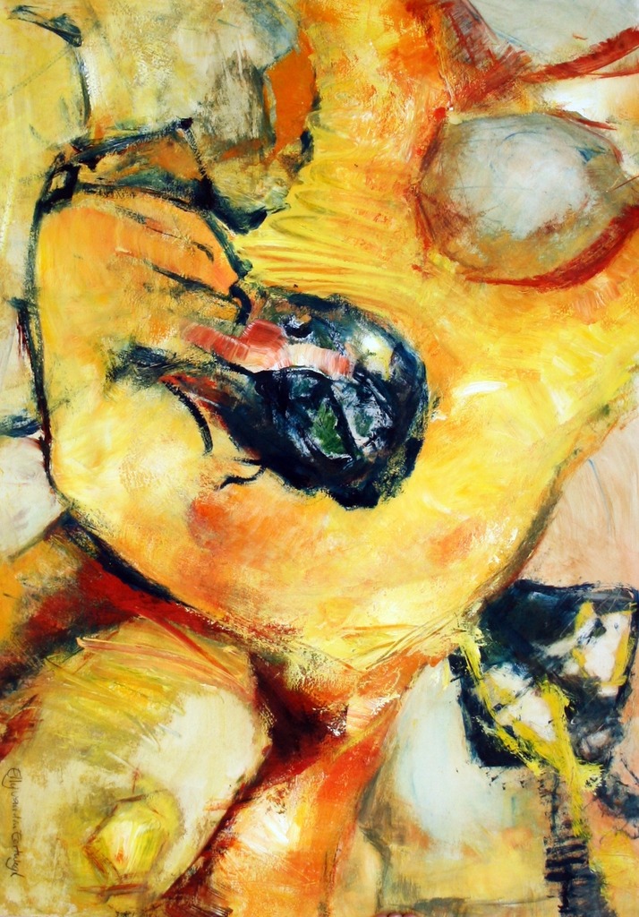 acryl op karton, n kombinatie van collage/ schilderen.