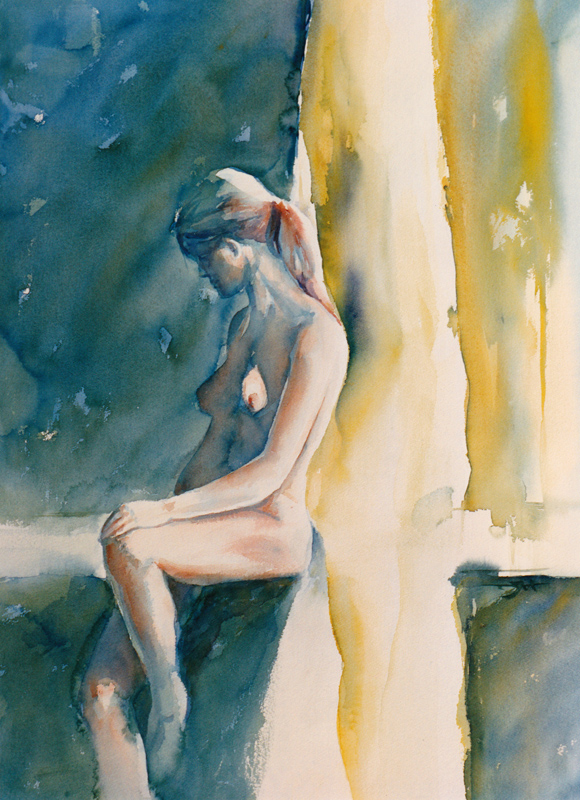 Aquarel Naakt Vrouw Groen Blauw Geel Oranje