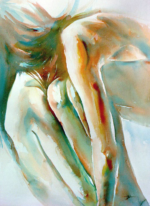 Aquarel Naakt Vrouw Groen Blauw Oranje