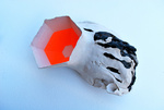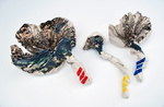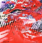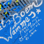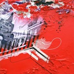 Acryl, zand, papier, gips, en spuitbus op doek.