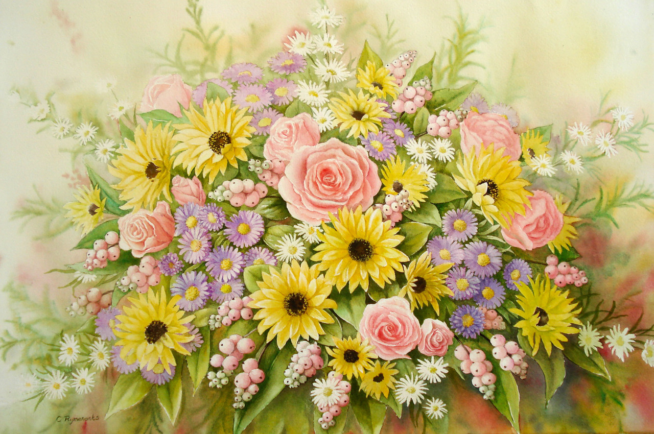 Aquarel nazomerboeket