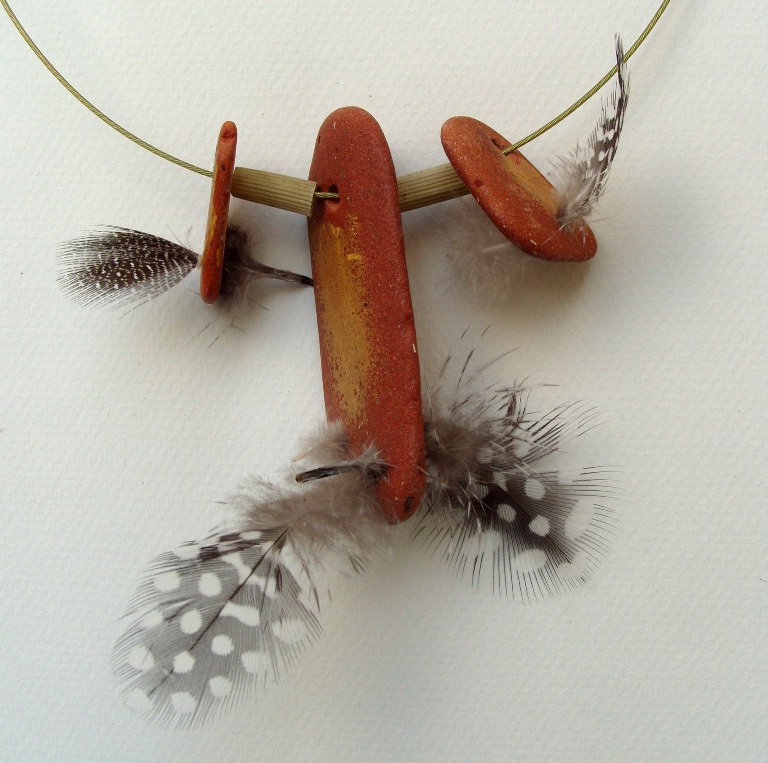 59 Terracotta steen, japanse holpijp, veren 4 cm.variant op nr. 58 spang doorsnee 47 cm.