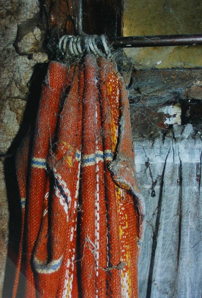 In het open gordijn ..