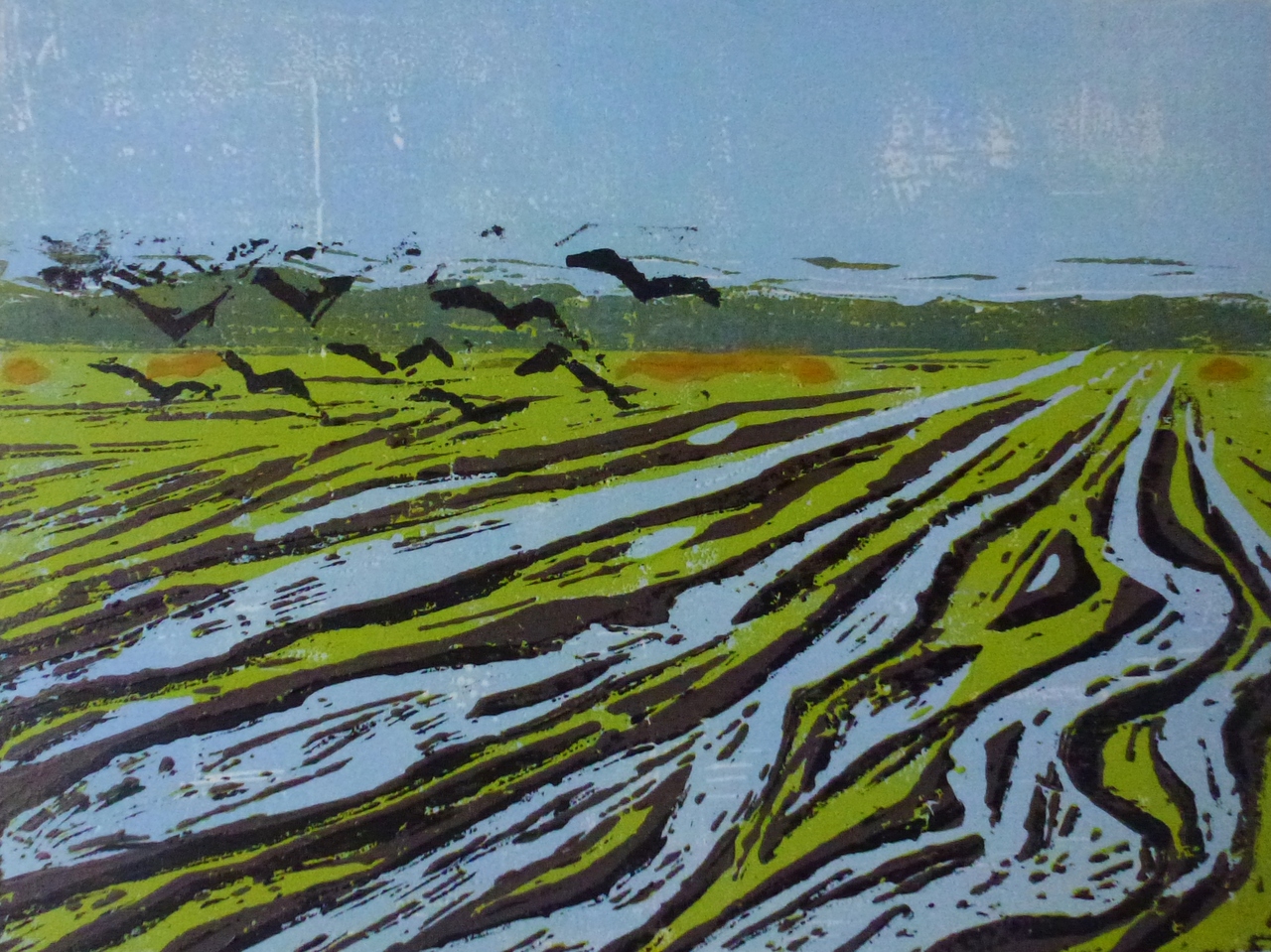 linosnede van natte akker, omg. Wieringerwaard